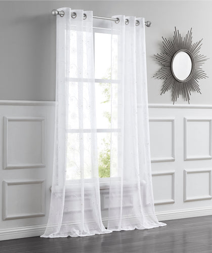 Dainty Home Amelie Embroidered Damask Design Textured Grommet Window Panel Pair