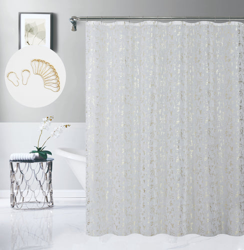 Dainty Home Clarissa Linen Textured Metallic Fabric Shower Curtain with 12 Matching Hooks 70" x 72"