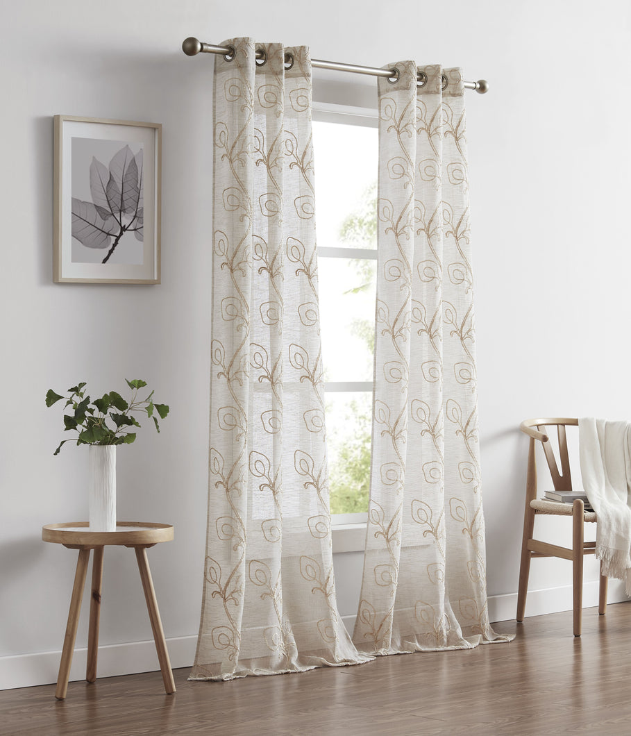 Dainty Home Stella Linen Look Boho Solid Fabric With 3D Floral Chenille Embroidery Light Filtering Grommet Panel Pair