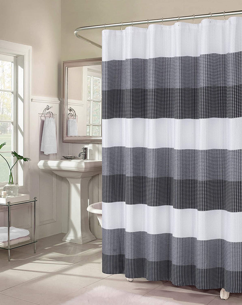 Dainty Home Ombre Waffle 3D Striped Waffle Weave Textured Ombre Stripe Designed Fabric Shower Curtain