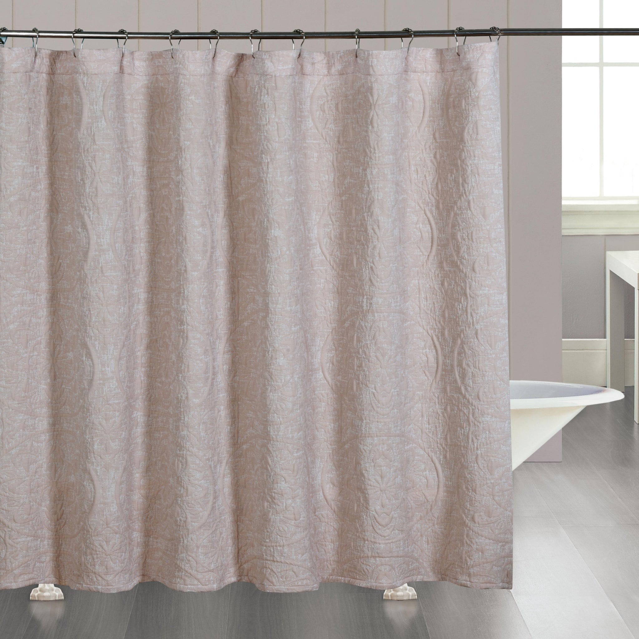 The Dainty Home Boheme Shower Curtain adds an element of artistic refinement to your bathroom with its intricately woven medallion jacquard pattern that blends global inspiration with modern texture. The beautifully sculpted design creates a sense of balance and symmetry, offering a rich visual presence that elevates both minimalist and eclectic décor styles. Crafted from soft yet durable polyester, the curtain drapes effortlessly and maintains its dimensional texture wash after wash, making it a stylish and practical upgrade for your bath. The raised jacquard weave gives the surface a luxurious hand feel, while the subtle tonal variations add depth and interest without overwhelming the room. Reinforced buttonholes ensure smooth, secure hanging, and the 72" x 72" size offers complete coverage for standard bathtubs and showers. Machine washable and easy to maintain, the Boheme Shower Curtain brings a sophisticated designer look to your everyday bathroom experience.