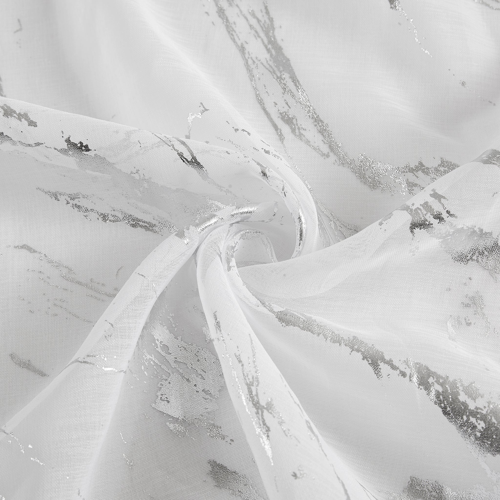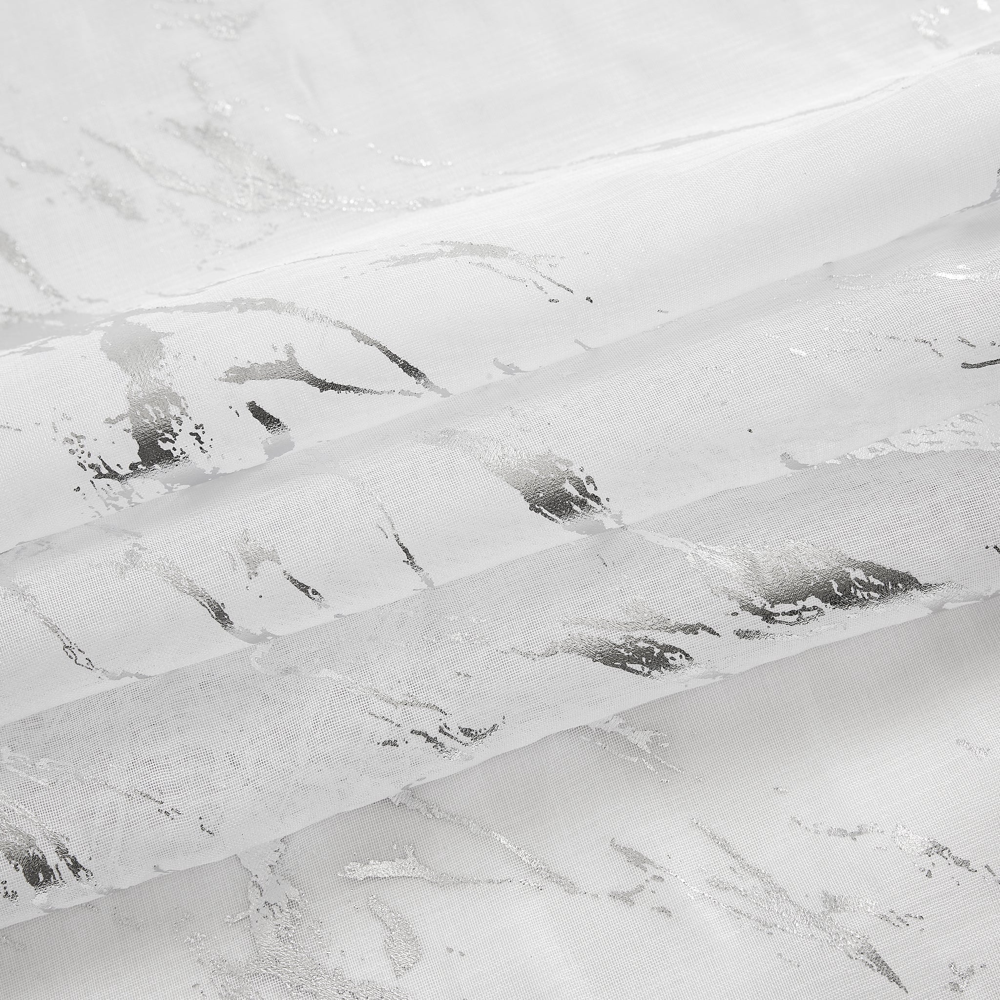 Soft, linen-like woven fabric with an elegant metallic abstract design creates a contemporary, spa-inspired feel and brings subtle luxury to your bath