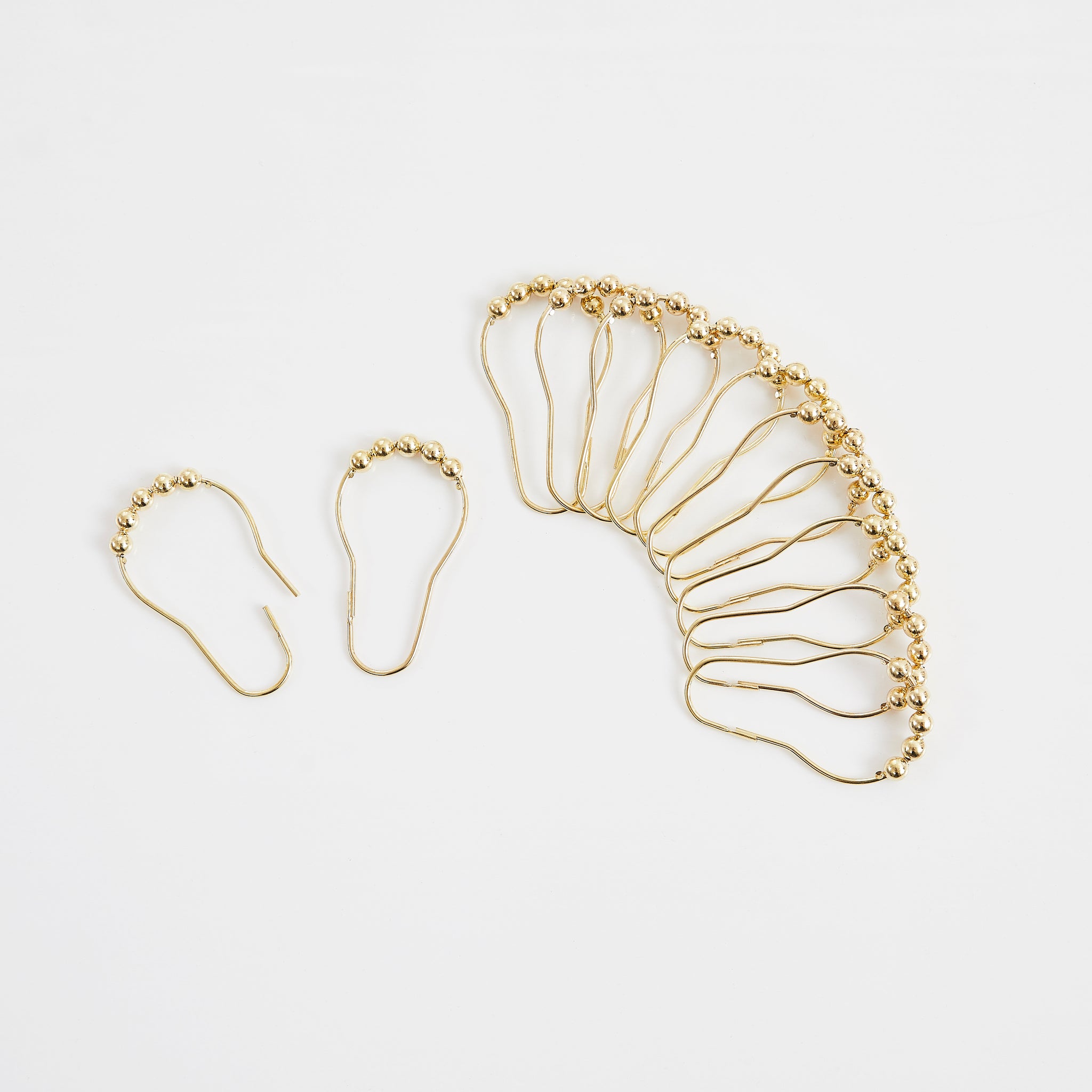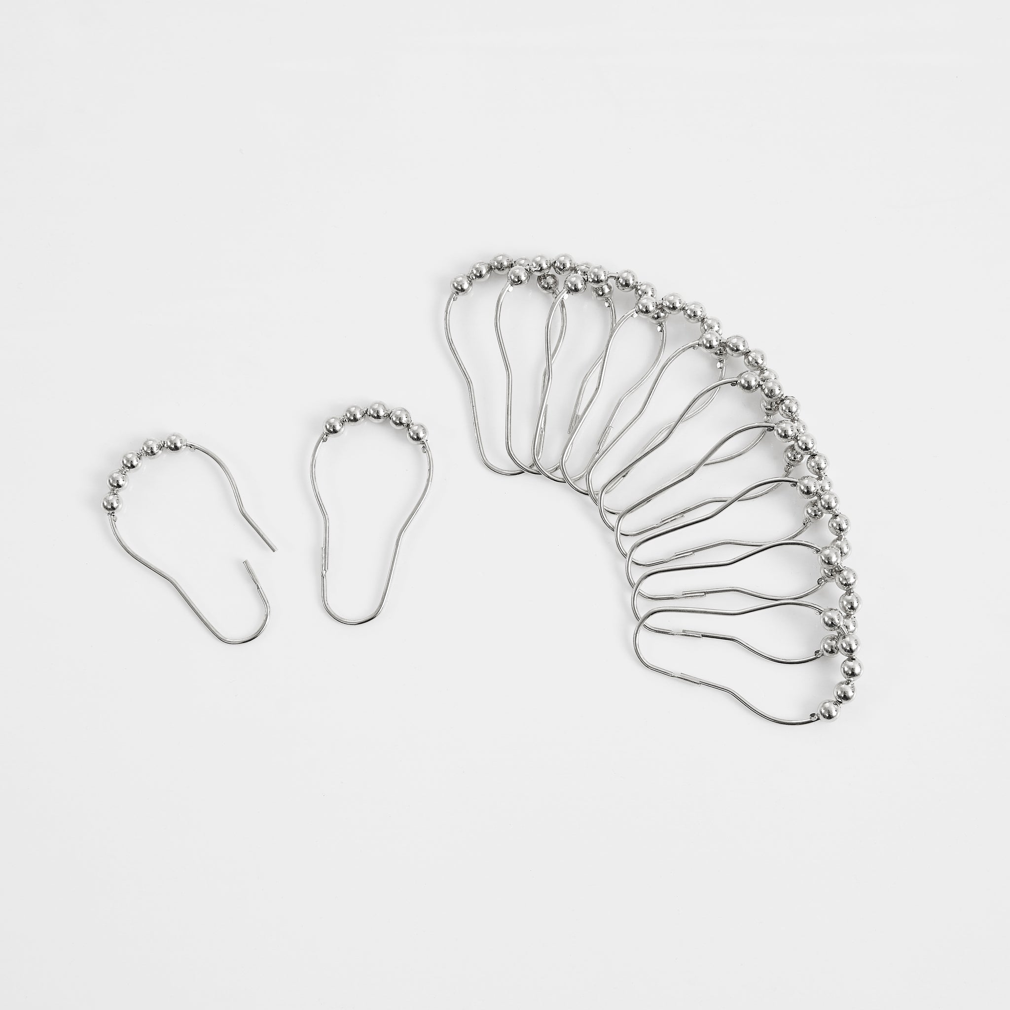 Each shower curtain has 12 reinforced buttonholes for hanging with hooks, clips, or rings. Set comes complete with 12 matching metal rollerball hooks—no need to purchase separately.