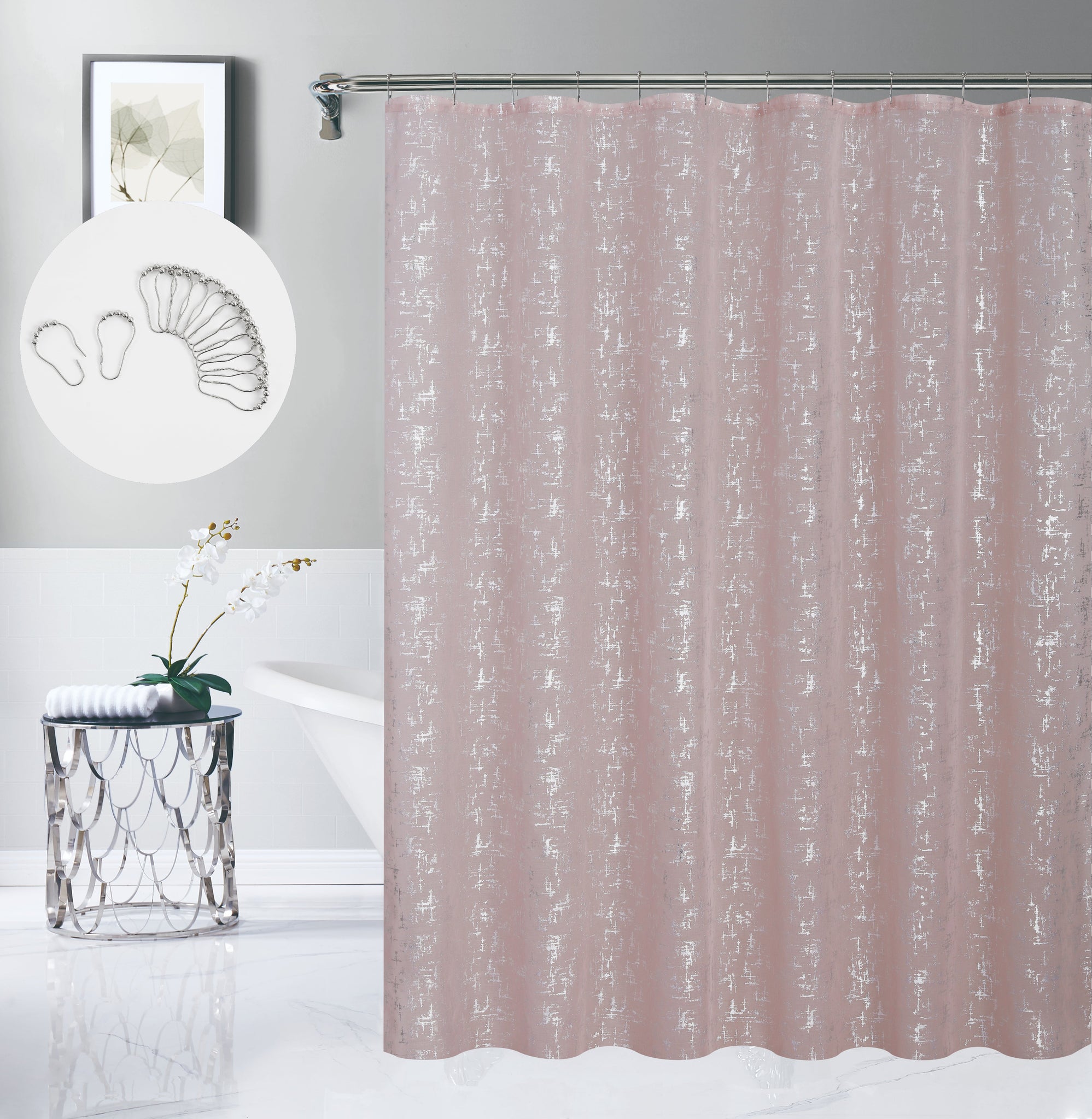 The Lindsey 13-Piece Shower Curtain Set combines modern style with everyday functionality, featuring a beautifully woven slub-textured polyester fabric that mimics the look of linen while offering durability, quick-drying performance, and an elegant drape. Its shimmering metallic abstract print adds a touch of contemporary sophistication, brightening your bathroom décor with subtle shine and refined texture. Designed to enhance any bathroom—whether in a home, apartment, dorm, or RV—the Lindsey shower curtain provides full coverage for tubs or shower stalls and includes a reinforced top header with sturdy finished holes for secure hanging. This complete set comes with 12 matching rollerball hooks that glide smoothly for effortless installation and a polished, coordinated look. Crafted from high-quality woven polyester, the curtain is easy to care for and can be machine washed in cool water and air dried or tumble dried on low as needed. Pair with a waterproof liner (sold separately) for best results and enjoy a beautiful, long-lasting, hotel-inspired upgrade to your bathroom space.