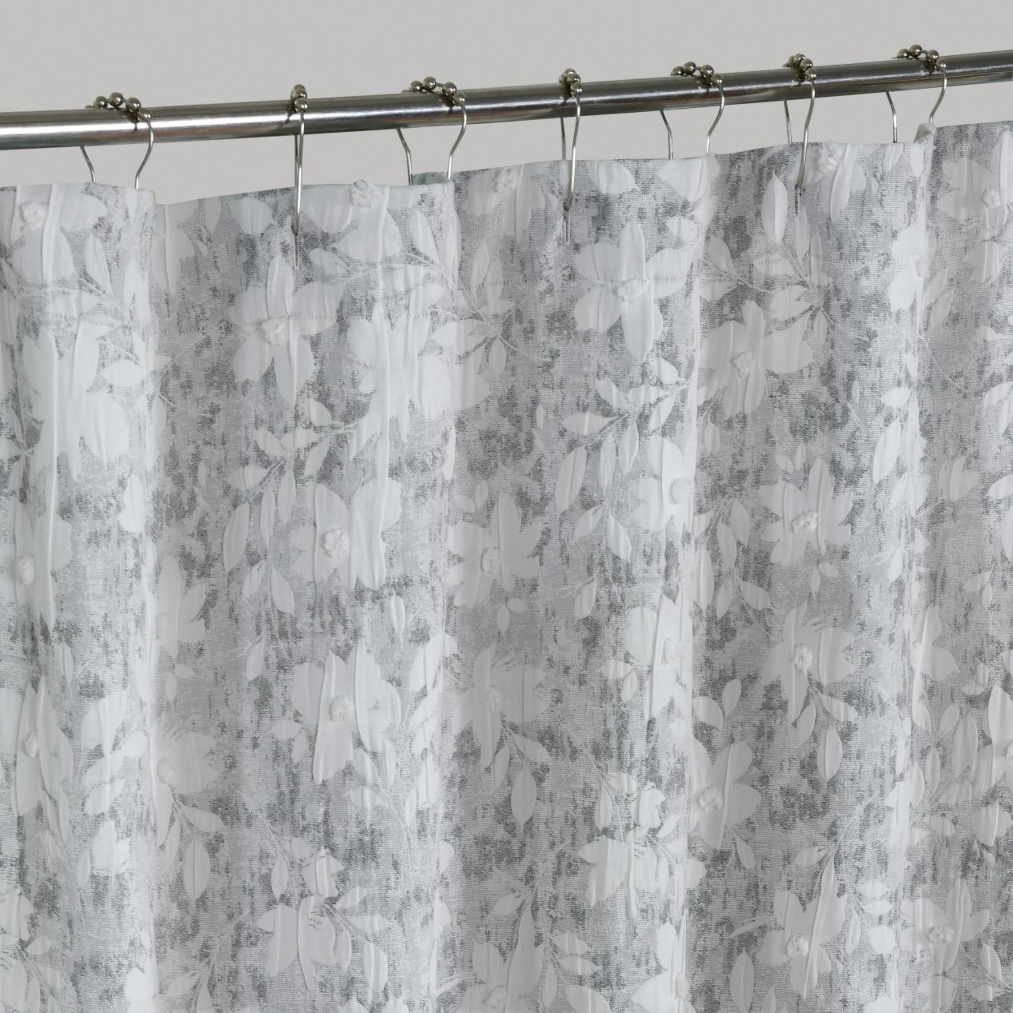 Dainty Home Laureen Floral Jacquard Soft Polyester Shower Curtain with Textured Puffs, 72" x 72"