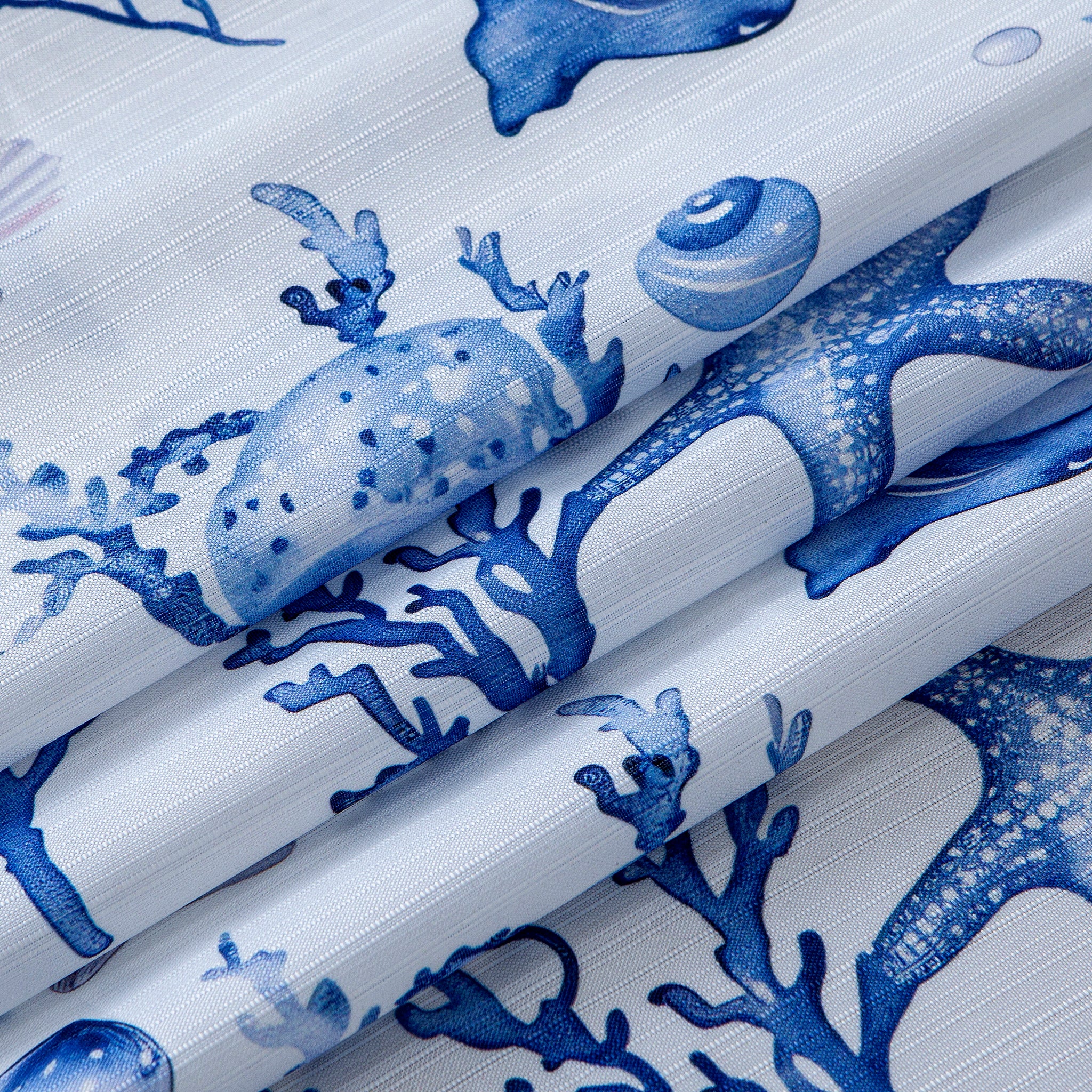 - Soft cotton-like fabric with an elegant printed fabric Coastal design, Our Coastal Printed Fabric Shower Curtain evokes a luxurious, spa-like feel, bringing luxury hotel style to your bath.